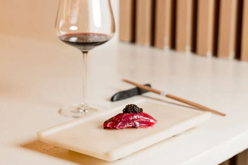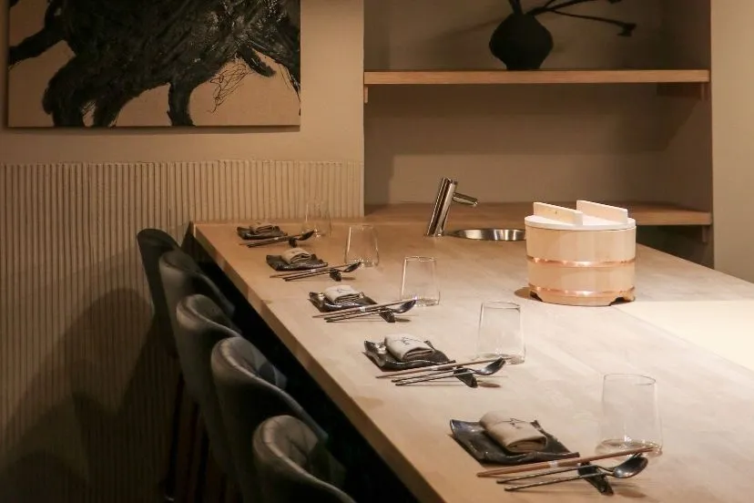 Un menú degustación de 17 pases —con protagonistas como sus icónicos nigiris— que evoluciona según el mejor producto de temporada, acompañado de una cuidada selección de sakes y vinos.